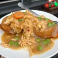 Our simmered buttery pulled chicken over four plain wonuts (our...